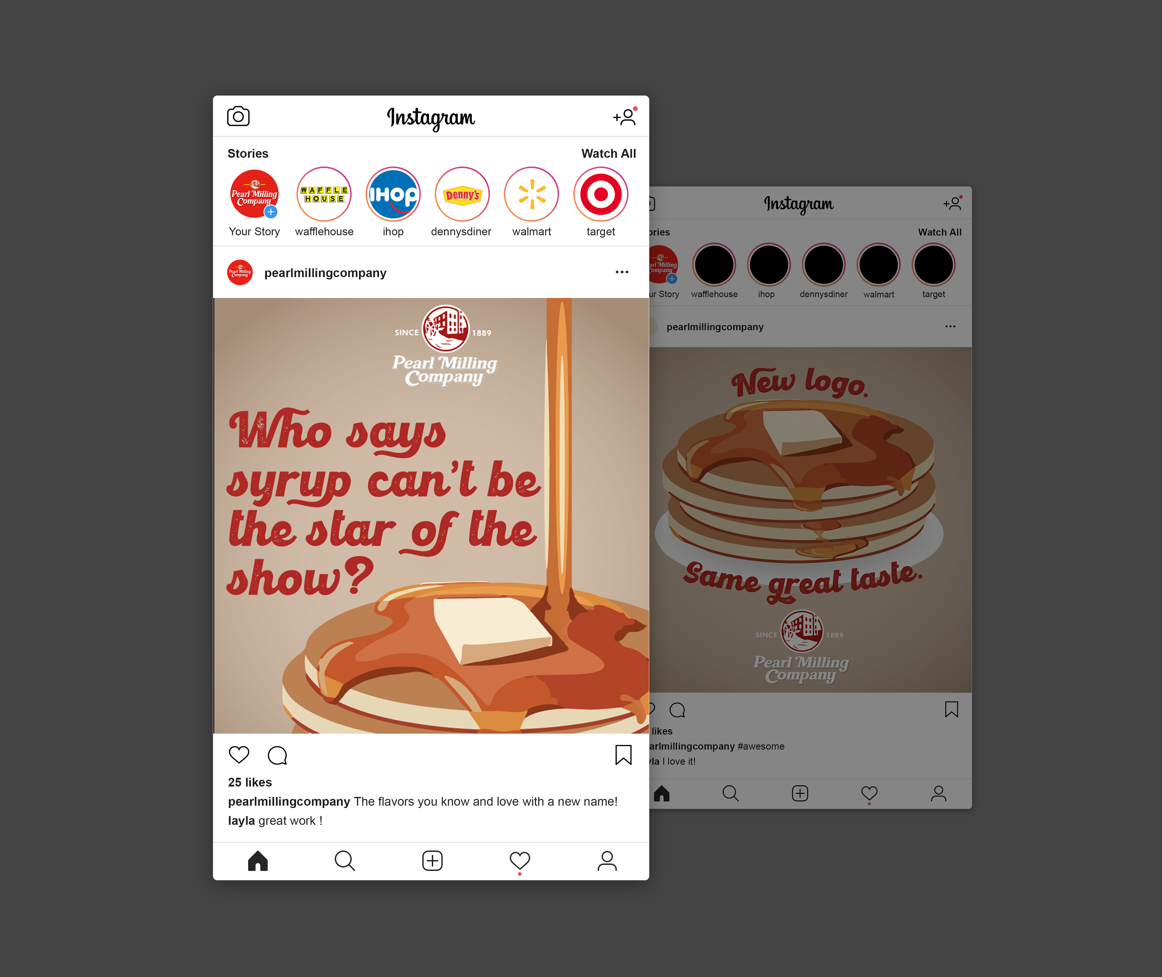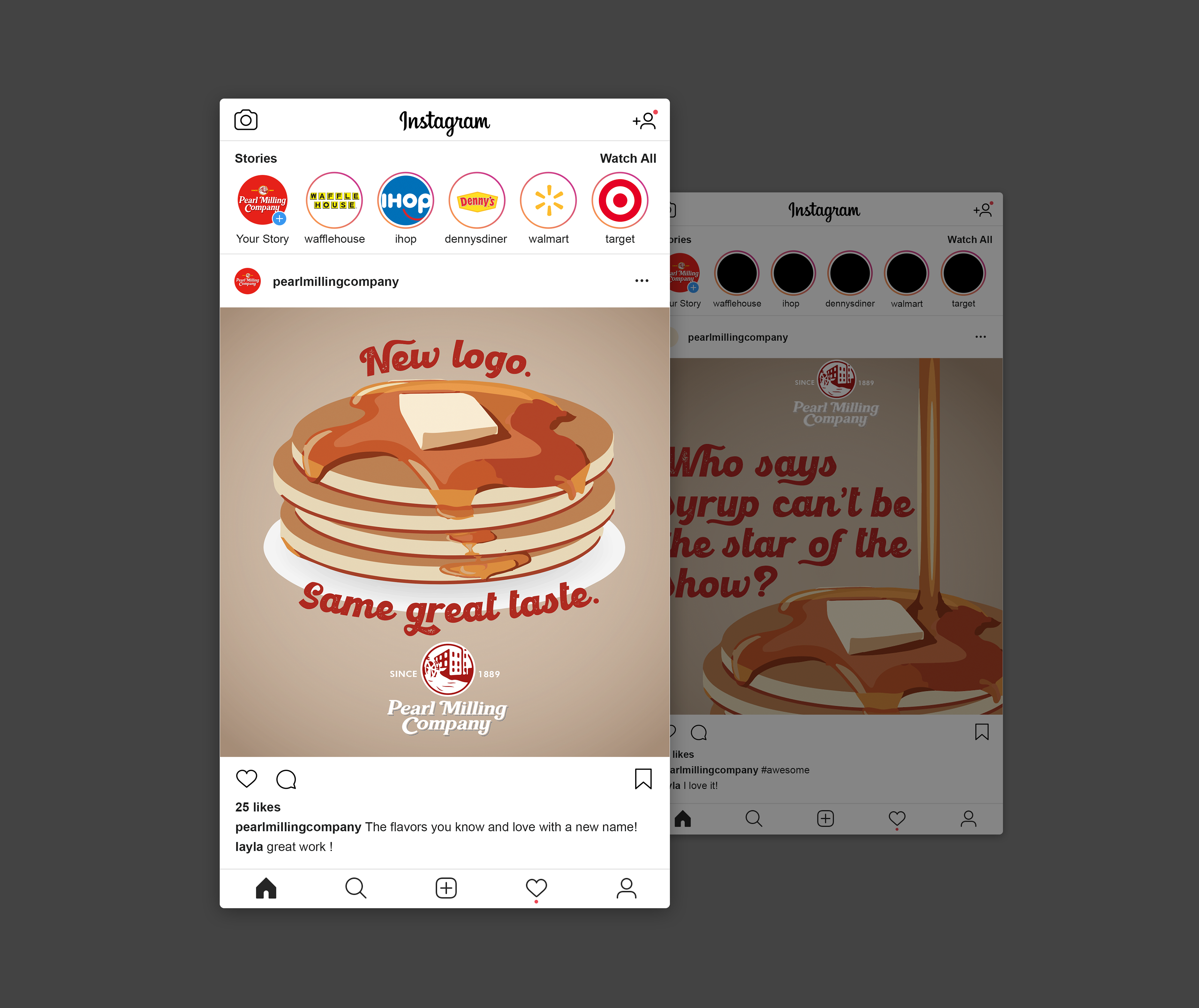 Formerly known as Aunt Jemima, the Pearl Milling Company has recently underwent a rebrand and redesign. Above I have created a social media campaign for Instagram showcasing their new logo with a fresh design.
